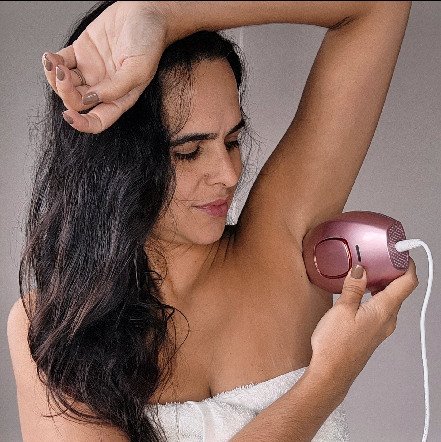 ✔ Se houver pelos longos, raspe antes da aplicação para que a luz pulsada atinja diretamente a raiz.